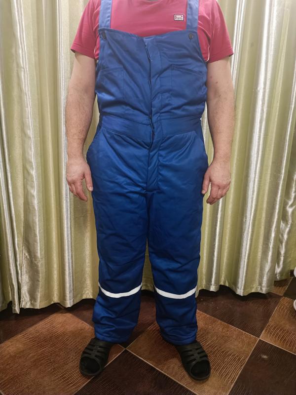 Теплый и лёгкий рабочий комбинезон с светоотражающими полосами. 4кармана, шлейки регулируются. Верх ткань саржа 50% полиэстер и 50%хлопок, отлично стирается и не мнется. Подкладка хлопок, наполнитель синтепон. Не тонкий. На рост 182-188 пог 60см пот 50-60см по бокам вшиты резинки поб 70см на фото одет на рост 195см, вес 124кг В наличии 2шт одного размера.