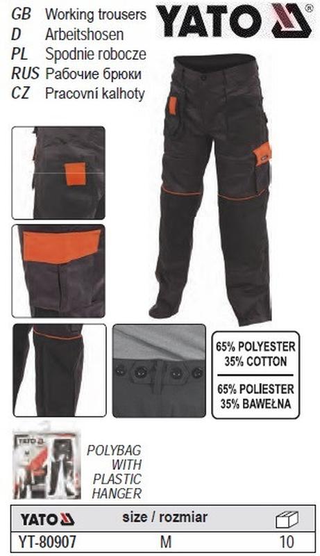 Штани робочі yato польща розмір m 65%/35% поліестер/бавовна yt-80907