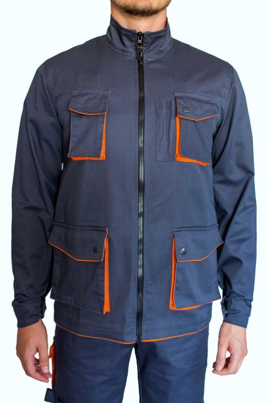 Куртка Декстер Размеры: 44 -- 62. Рост ( от 155 см до 191 см). 1) Карманы -- 4 объемные карманы, с клапанами на кнопках в том числе и для мобильного телефона, + 2 отделения для ручки или карандаша. 2) Застежка -- центральная на молнии 3) Воротник стойка 4) Рукава втачные, манжет регулируется с помощью кнопок 5) Низ куртки прямой, спинка удлиненная 6) Ткань Garant Elit -- повышенной износостойкости -- плотностью 265 гр/м, состав 65пэ/35 хлопок, сертификаты ISO 105 ISO 5077 EN 340:2004 PN-P-84525 ISO 14184-1 7) Фурнитура бельгийских и итальянского производства имеющая международные сертификаты качества ISO и Oeko-Tex 8) Цвет: сочетание темно серого с оранжевым, самое популярное сочетание цветов в этом сезоне. Размерная сетка FreeWork Размер Рост Рост,см Грудь,см Талия Бёдра S 44 3-4 170-176 88 76 92 5-6 180-188 46 3-4 170-176 92 80 96 5-6 180-188 M 48 3-4 170-176 96 84 100 5-6 180-188 50 3-4 170-176 100 88 104 5-6 180-188 L 52 3-4 170-176 104 92 108 5-6 180-188 54 3-4 170-176 108 96 112 5-6 180-188 XL 56 3-4 170-176 112 100 116 5-6 180-186 58 3-4 170-176 116 104 120 5-6 180-186 XXL 60 3-4 170-176 120 108 124 5-6 180-188 62 3-4 170-176 124 112 128 5-6 180-188