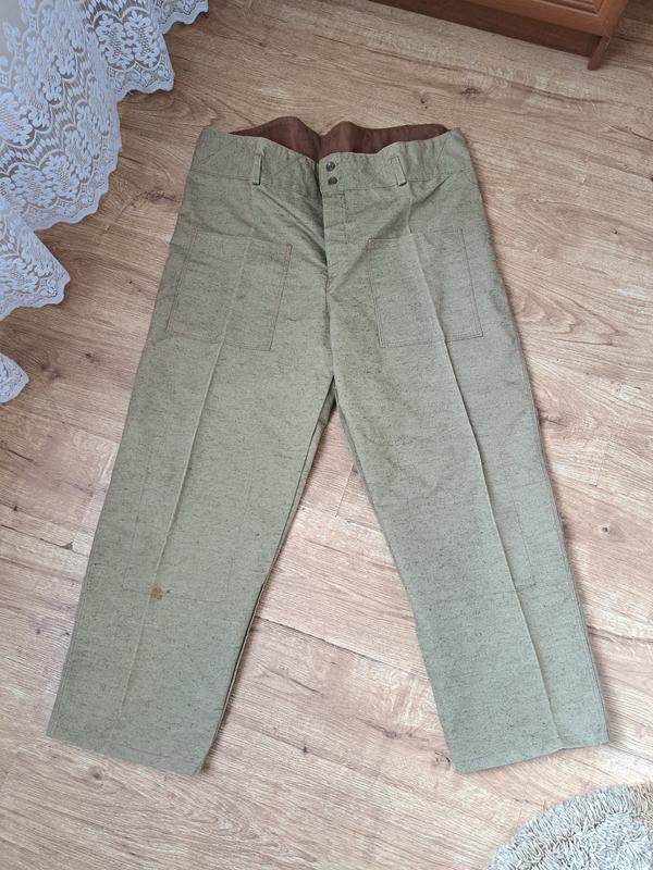 Можно использовать для работы на СТО, в качестве защиты при сварке, на строительстве и другой грубой работе. Очень плотный материал. Штани 1: - обхват талии 53см. - длина 103см. - длина внутреннего шва 72см. - ширина штанины на выходе 25см. Штани 2: - обхват талии 50см. - длина 107см. - длина внутреннего шва 73см. - ширина штанины на выходе 25см. Штани 3: - обхват талии 51см. - длина 109см. - длина внутреннего шва 74см. - ширина штанины на выходе 25см. Пишите - договариваемся! Дополнительные фото отправлю на Вайбер.