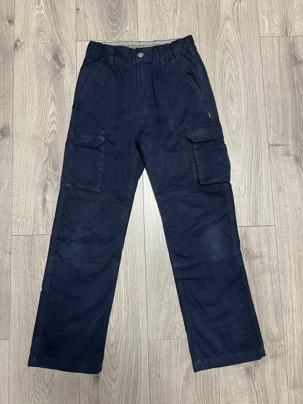 Штани-карго ідеально підходять для будівництва, організації заходів, залізних доріг/метро, вулиць, безпеки, дорожнього руху, складських приміщень. Міцна тканина з поліестеру/бавовна Кишені на стегнах у стилі карго покращеної форми, з додатковими кишенями Пояс 34 см Стегна 48 см Внутрішній шов 69 см Довжина 92 + 5 см пояс Розмір S На одному коліні є невелика потертість, в іншому в ідеалі Потрійна строчка основних швів.