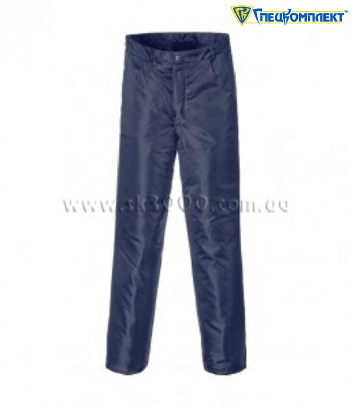 Штани "Механік" утеплені, прямі, з приточним поясом що має застібку на гудзик та гульфіком на гудзиках. Пояс з еластичною тасьмою, з боків, та шльовками під вузький ремінь.Кишені бічні, врізні. На задній частині штанів - талієві виточки. Тканина: Грета. Колір: темно-синій. Утеплювач: один шар синтепону. Підкладка: поліестер.
