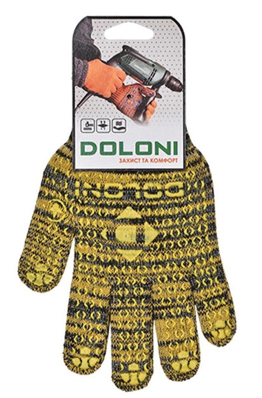Рукавички "Долоні Універсал" - це трикотажні безшовні захисні рукавички з ПВХ малюнком. Армуюче полівінілхлоридне покриття забезпечує хороше зчеплення з поверхнею, що допомагає міцніше утримувати слизькі предмети, і зменшує навантаження на руки. Рукавиці ХБ з ПВХ надолонником забезпечують захист кистей рук і області зап'ясть від механічних пошкоджень і забруднень. Чим більше сумарна площа ПВХ напилення, тим виріб міцніший. Таке спеціальне покриття продовжує термін служби рукавиць, вони менше протираються. Матеріал рукавичок: 70 ХБ / 30 ПЄ Вид покриття: ПВХ-малюнок Площа обливу: Без обливу Розмір: 10 (XL) Галузь застосування: Загальновиробничі роботи