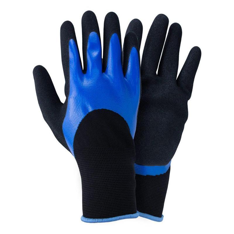 Перчатки трикотажные с двойным нитриловым покрытием р9 (сине-черные манжет)
