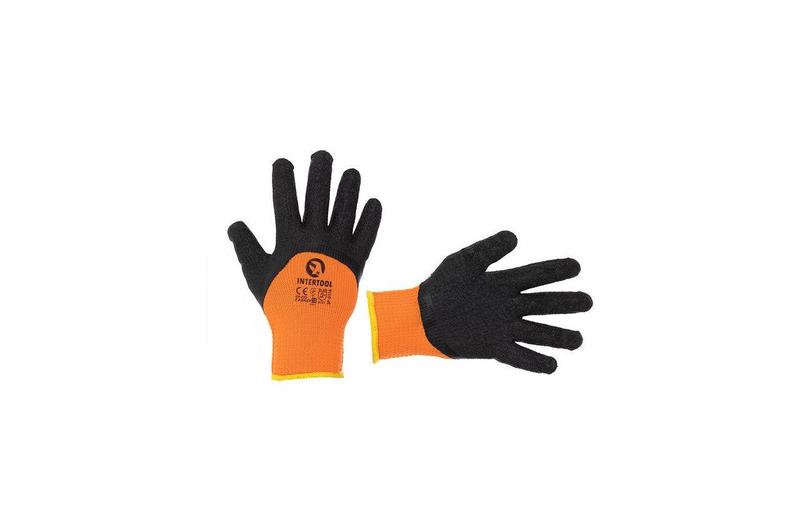 Утеплені рукавички SP-0116 з латексним покриттям, призначені для захисту рук в умовах середньої тяжкості та низьких температур. Виготовлені з акрилової нитки. Це пряжа із синтетичних волокон, яка забезпечує зносостійкість, комфорт, гіпоалергенність і гігієнічність. Акрил може утримувати тепло. Еластичний манжет забезпечує захист від потрапляння всередину рукавички дрібних частинок і пилу. Особливості: Комфортна робота на холоді забезпечується завдяки виготовленню з акрилової нитки; Висока стійкість до стирання та механічних пошкоджень; Надійне утримання слизьких предметів забезпечує латексне покриття рукавички; Зручність у роботі завдяки безшовній конструкції, що облягає руку. Рукавички мають гарні захисні властивості від механічних пошкоджень (порізи, проколи), водночас залишаються еластичними та м'якими. Під час виготовлення рукавичок використовується 13-а категорія в'язання (13 петель на дюйм). Латексне покриття нанесене за принципом 3/4 і захищає практично весь пензель. Це забезпечує надійний захист пензлів, долонь, пальців від пошкоджень і впливів шкідливих речовин. Не рекомендується використовувати в роботі з нафтопродуктами, змащувальними матеріалами та кислотами. Утеплені рукавички SP-0116 відповідають таким європейським стандартам якості: EN 420 — визначає загальні вимоги щодо ергономіки, практичності, нешкідливості та матеріалу виготовлення захисних рукавичок. EN 388 — визначає захисні властивості рукавичок і їхню стійкість за такими параметрами: Стійкість до стирання; Стійкість до порізу; Опір розриву; Міцність до проколу. Розмір: 10"; В'язка: 13 петель на 1", безшовна; Покриття: латекс на долоні; Манжет: в'язаний