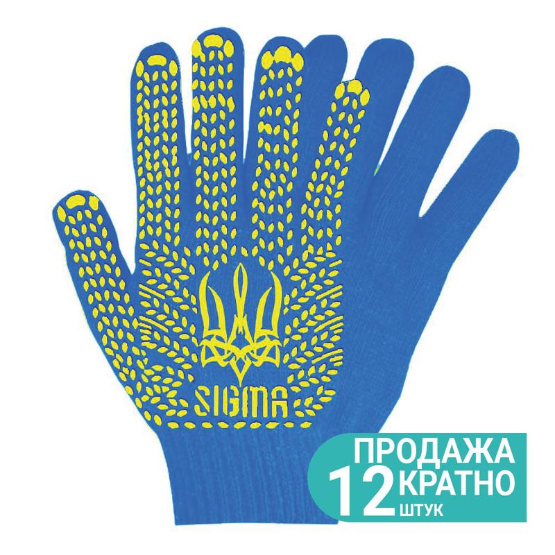 Перчатки трикотажные с точечным пвх покрытием р10 тризуб кратно 12 парам (синие) sigma (94...