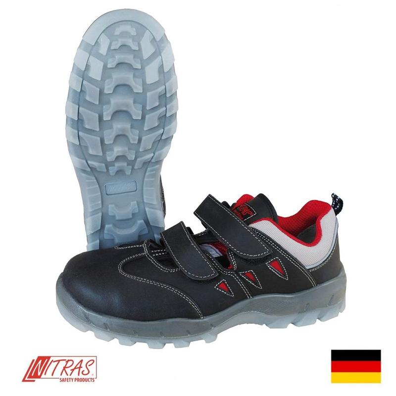 Розмір 42. Довжина устілки 27см NITRAS SPORT STEP SUMMER, захисні сандалі класу SIP з зносостійкої цілісної шкіри - нубук чорного кольору, міцна і не залишає слідів підошва з ПУ / ТПУ, сіра/прозора, композитний підносок, антипрокольная кевларовая устілка (без металу), вкладна формована анатомічна устілка з амортизуючими елементами, спортивний дизайн, максимальна захист від ковзання (SRC), повнота 11, застібка-липучка, світлоповертаюча стрічка по колу, можливість застосування в якості антистатичної взуття. Відповідають: ДСТУ EN ISO 20345, EN 61340-4-3, DGUV Regel 112-191
