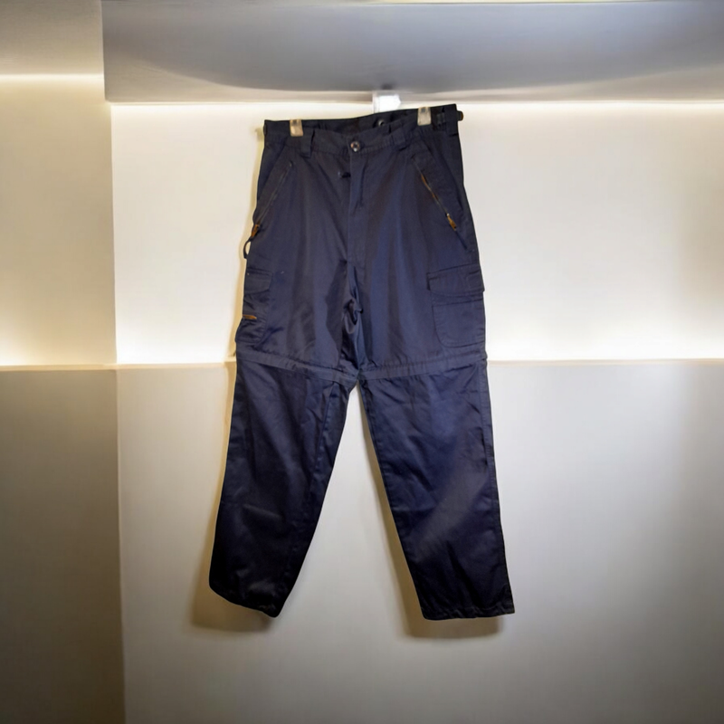 Стан нових, але без паперової бірки Багато функціональних кишень Блискавки працюють Ширина штанини внизу регулюється Штанини відстібуються і штани можна перетворити в шорти 65% поліестер 35% бавовна Посадка спереду 31 Довжина 105 крок 78 Напівобхват талії 38.5 Напівобхват бедер 51 Ширина штанини внизу 21 см