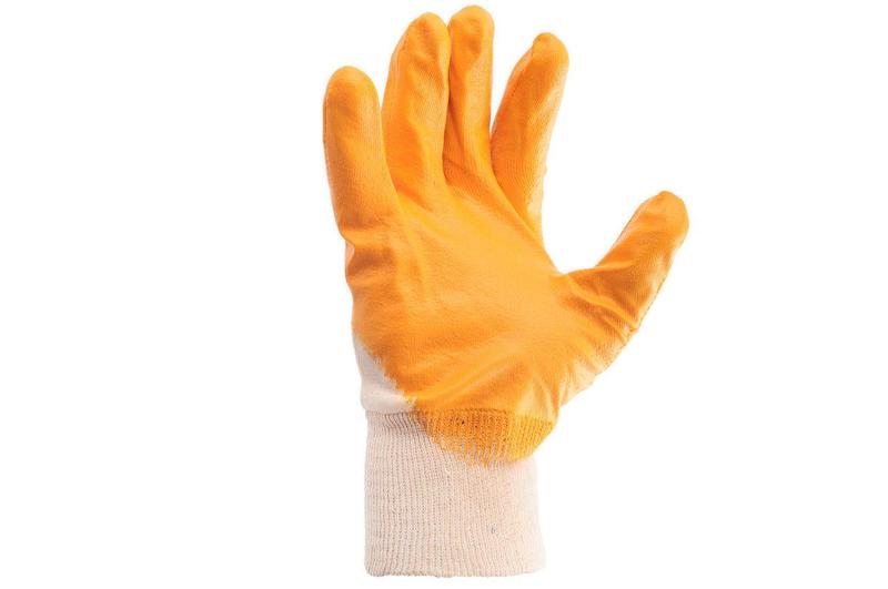 Рукавички SP-0110 виготовлені на основі бавовняного трикотажу та пов'язані безшовним методом. Покриті жовтим нітрилом на внутрішній і тильній стороні долоні, що забезпечує стійкіший і надійніший захист долонь і пальців від забруднень і пошкоджень під час проведення побутових, будівельних і садових робіт. Стійкі до стирання та мають довгий термін експлуатації. Повітропроникна тканинна основа створює додатковий комфорт. Кількість у пакунку: 120 пар; Покриття: нітрил; Манжет: в'язаний; Розмір: 10"