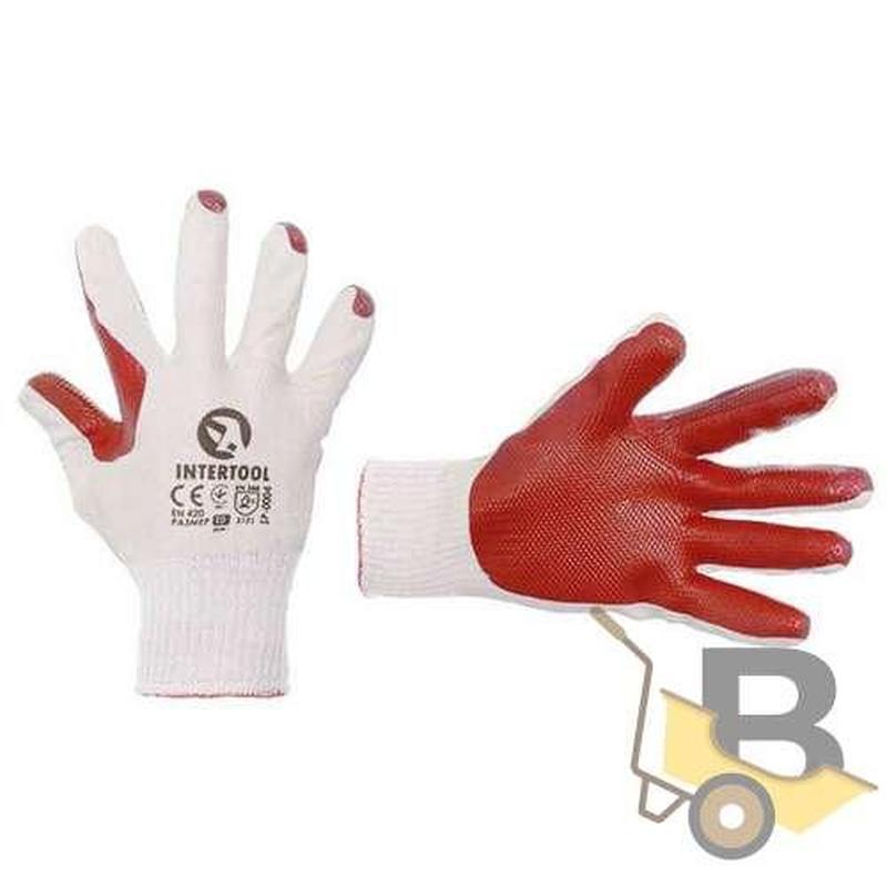 Рукавички муляра (скляра) відмінно захищають руки, завдяки щільному покриттю з латексу, нанесеному на основу методом вулканізації і характеризується підвищеною зносостійкістю і міцністю. В основі ж лежить полікотон, що забезпечує гігієнічність і комфорт під час виконання робіт. Манжет-гумка забезпечує надійну фіксацію і рукавичка зручно сидить на руці, захищаючи від потрапляння всередину пилу і дрібних часток. Модель рукавичок SP-0004 має подвійний латексний облив червоного кольору. Для додаткового захисту в місцях тримання між вказівним та великим пальцями також нанесене латексне покриття. Рельєфна поверхня латексу підвищує властивості зчеплення і забезпечує відмінне захоплення матеріалів, що мають гладкі, слизькі поверхні, при цьому зберігається відмінна чутливість пальців і долоні. Колір - червонийРозмір - 10"Матеріал - трикотаж/латекс