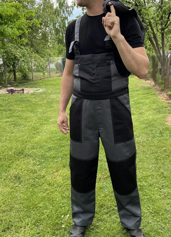 Напівкобінезон призначений для майстрів, професійних робітників, будівельників, електромонтерів, вантажників, працівників автосервісу, сфери послуг. Індивідуальне пошиття 2-4 робочі дні (наприклад для плитощиків з кишенями на колінах). Застосовується для захисту від різних виробничих забруднень (пил, масла, водні розчини, бруд). Тканина: дефенса, щільність 210 грамів на метр квадратний. Колір: темно-сірий, чорний, світло-сірий. Дуже гарно носиться. Якісне пошиття.