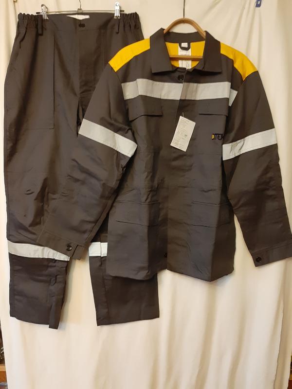 Куртка чоловіча робоча з брюками, чоловічий костюм робочий. Костюм Новий. Розмір 48 - 50. Зріст 170-176. Склад 100% х/б Колір Темно-сірий. Куртка Центральна бортова суппатная застібка на гудзики Комір відкладний, стойка Два верхніх накладних кишені на гудзиках Два нижніх кишені на гудзиках. Манжети застібаються на гудзики. Підсилювальні накладки на ліктях. Штани Притачной пояс на резинці На передніх половинках кишені . Штани застігаються на гудзиках. Підсилювальні накладки на колінах. Куртка довжина по спині 76 см, обхват по грудях 115см, довжина рукава 65 см. Брюки довжина 110см, обхват по талії 86см, Обхват Б 115см.