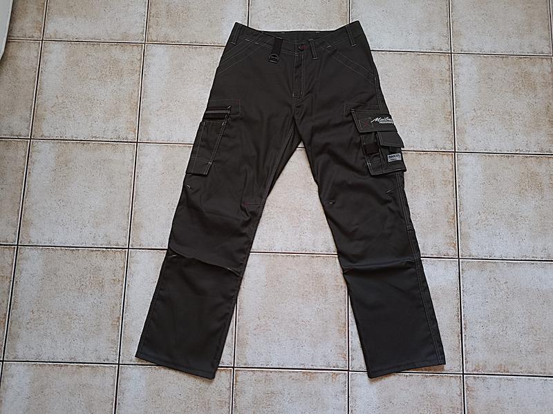 1) фірмові робочі штани Mascot (Denmark) вільний крій, розмір 50 M/L ширина в поясі від 43 см і тягнеться до 44 см, довжина за зовнішнім швом 110 см, ширина штанини на виході 24 см, колір сіро-зелений/хакі, матеріал 65% поліестер 35% котон, міцні потрійні шви, багато кишень для дрібного інструменту, надійна фірмова фурнітура, стан нові