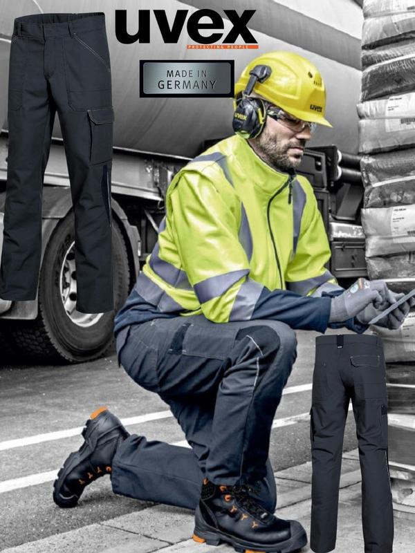 Штани Uvex perfect ,темнл-синьго кольору,матеріал: 65% поліестер, 35% бавовна; приблизно 250 г/м², саржеве переплетення. Це оптимізовані з фізіологічної точки зору штани з анатомічно розташованими еластичними вставками та вставками контрастних кольорів, що забезпечують постійне благополуччя та свободу рухів. регульована по ширині еластична стрічка для оптимальної посадки багато різних кишень пропонують достатньо місця для зберігання еластичні вставки в області колін для більшої свободи рухів спортивний стиль підходить для промислового прання Öko-Tex Standard 100 Інструкції з догляду: прати при 60°C, хлорування неможливе, прасування: II бал, хімчистка: P, сушарка в барабані: I бал, підходить для промислового прання, Д.по бічному шву 96 см/Д.по кроковому 66 см П.О.Т 53 см,є можливість зменшити,гума з ґудзиками фіксатором. П.О.С. 62 см Висота посадки 35см спереду,та 43 см позаду. Шир.понизу 24 см. Стан нові без бірок,євросток.