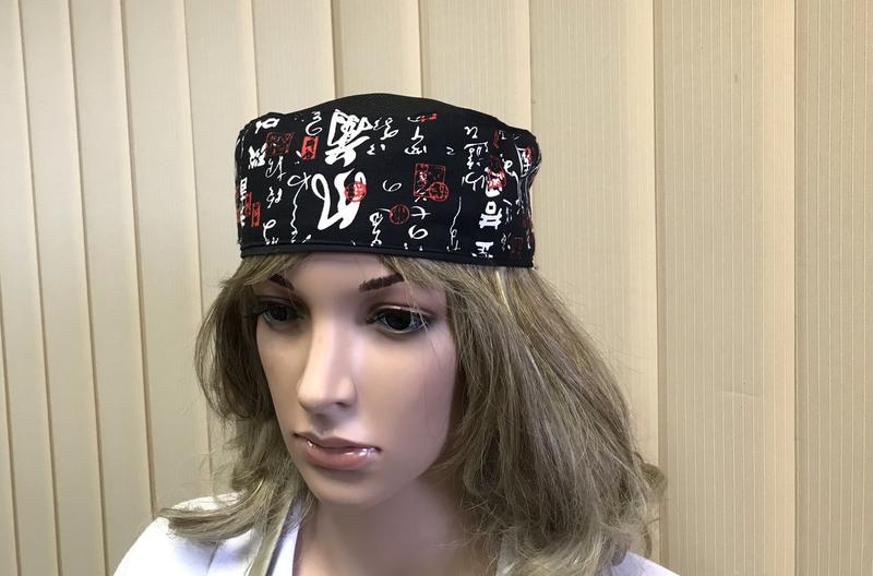 Шапочка для кухаря із сіткою іерогліф з принтом