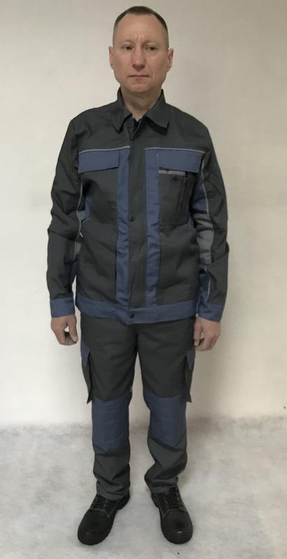 Костюм состоит из куртки и полукомбинезона. Для пошива используется ткань саржа состав 100 х/б. Цвет ткани изделия может менять по желанию заказчика.