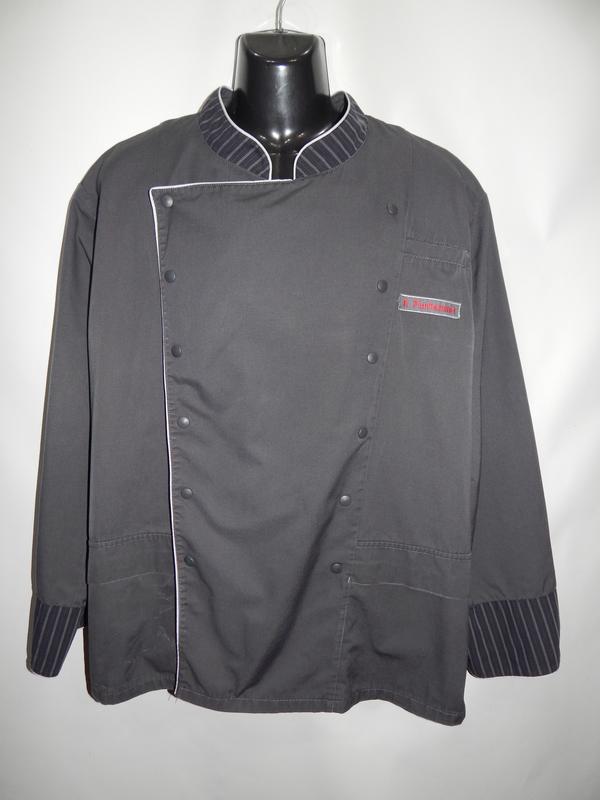 Сорочка чоловіча робоча для кухаря WEITBLICK р. 62-64 039МРК (тільки в зазначеному розмірі, тільки 1 шт.) Сорочка робоча пошита зі щільної тканини ( щільність 245 г/м2) - 65% бавовна, 35% поліестер. Застібається на кнопки. Сорочка з кишенями. Під пахвами сорочки вшитий трикотаж для провітрювання. Стан б/у, гарний. Трохи колір утрачений на боці сорочки, см фото. МЕРКИ по верху куртки: комір — 56 см, плечі — 57 см, напівобхват грудей — 72 см, напівобхват талії — 70 см, напівобхват сорочки внизу — 70 см, довжина рукава від плечового шва — 65 см, довжина виробу — 79 см.