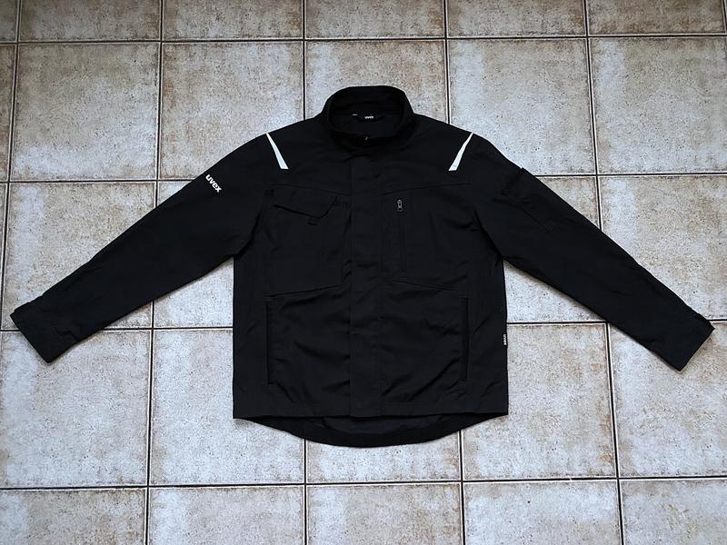 фірмова робоча куртка жакет Uvex (Germany) Зручний ергономічний крій, розмір L/M 50/52, колір чорний, матеріал 65% поліестер 35% котон, 2 бічні 2 нагрудні кишені 1 додатковий на плечі, комір-стійка, на зап'ястках липучки для регулювання об'єму, на плечах і спині світловідбивні/сигнальні елементи, надійна фірмова фурнітура, стан нова