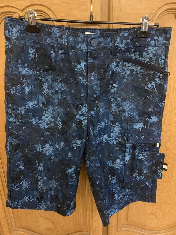 Продам нові робочі шорти TopCraft Workwear у розмірі 50. Шорти жодного разу не носилися, у збереженому стані, тканина без потертостей, дирок чи слідів використання — лише без бірки. Модель з міцного матеріалу (65% поліестер / 35% бавовна), підходить як для роботи, так і для активного відпочинку. Зручний крій, багато функціональних кишень (на кнопці, на блискавці), міцна застібка, пояс на резинці + шльовки під ремінь. ⸻ Розміри (у перерахунку на українську): • Довжина по боковому шву: 56 см • Довжина по кроковому шву: 28,5 см • Півобхват талії: 43–46 см (резинка тягнеться) • Півобхват стегон: 51 см • Посадка перед: 32 см • Посадка зад: 37 см ⸻ Стан: нові, без слідів використання Колір: синьо-чорний цифровий камуфляж Матеріал: 65% перероблений поліестер, 35% бавовна