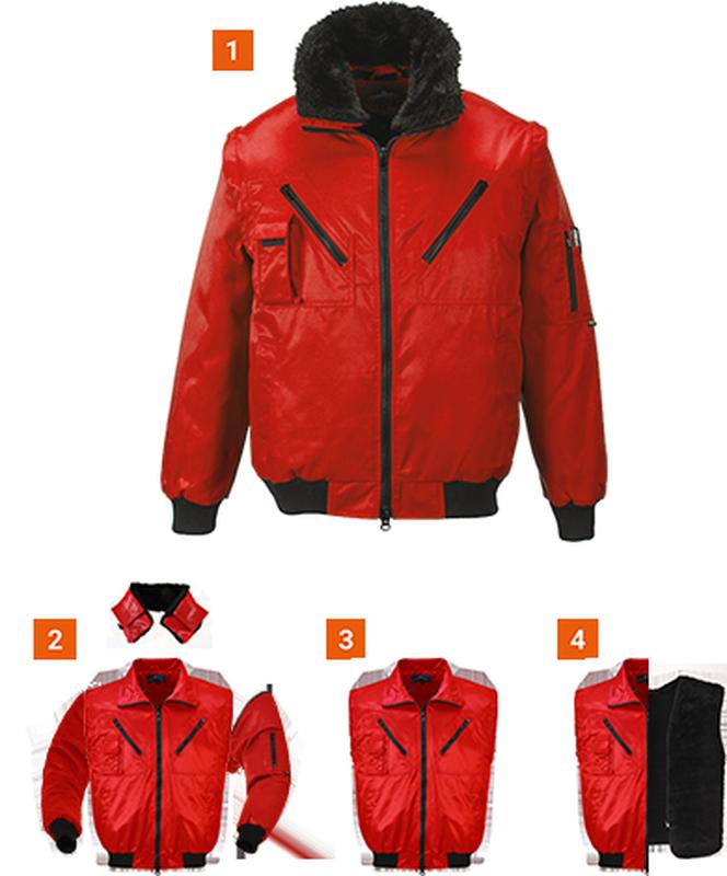 Куртка в класичній однотонним забарвленням. Універсальні особливості включаю в себе знімні рукави на застібці-блискавці численні кишені знімну хутряну підкладку і комір. Водовідштовхувальна тканину робить куртку придатною для будь-якої погоди.