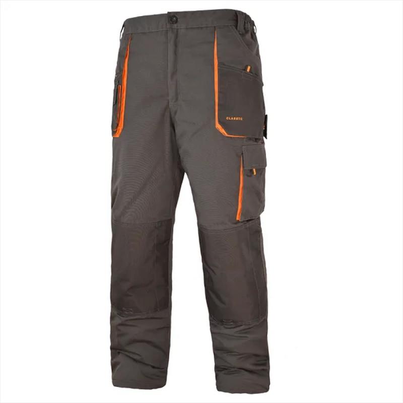Штани зимові Artmas CLASSIC OC Захисні зимові штани фірми ARTMASTER Poland Сезон: осінь/зима; Колір: чорно-сірий із помаранчевими вставками; Доступні розміри: 44-64. ### Матеріал: - ### 65% поліестеру та 35% бавовни; - ### Щільність - 270 +/- 10 г / м 2 ; - ### Утеплена підкладка 100% поліестер; Характеристики: - ### Естетичний вигляд та комфорт; - ### 11 кишень, з них 2 для наколінників; - ### З боків на поясі вшита гумка. Особливості: - ### Водовідштовхувальні; - ### Ізольовані; - ### Виготовлені з міцних матеріалів; - ### Комфортні. Рекомендується для таких видів робіт: - Монтаж; - Будівництво; - Склади; - Промислове виробництво і т. д. ### ### ## ###