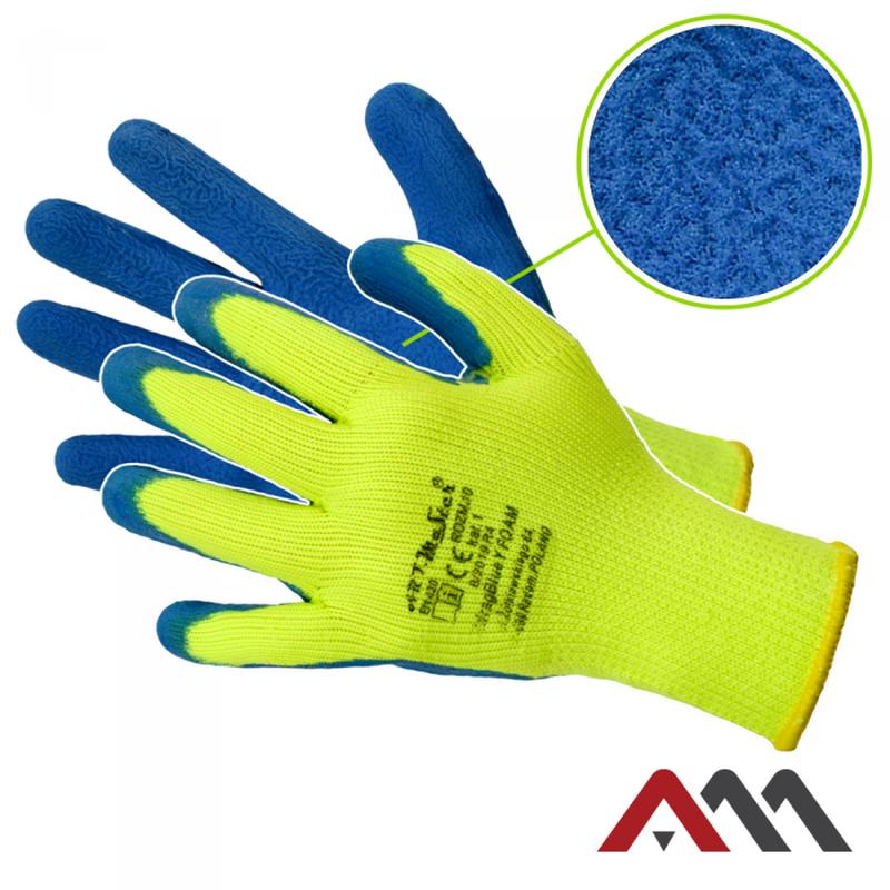 Рукавички захисні Artmas RdragBlue Y Foam Рукавички захисні, утеплені, трикотажні, вкриті спіненим латексом, грубе покриття. - ### з поліефірного трикотажу (поліестер махровий з внутрішньої сторони), - ### вкриті синім спіненим латексом на 1/2 поверхні рукавички, - ### грубе латексне покриття, - ### флуоресцентне безшовне трикотажне полотно, - ### оброблений рантом, Ідеально підходить для використання в зимових умовах. Розмір: 9, 10, 11 Art.MaSter ® - торгова марка. CE кат.1 EN 420: 2003 + A1: 2009 колективна упаковка: 120/12 пар ###