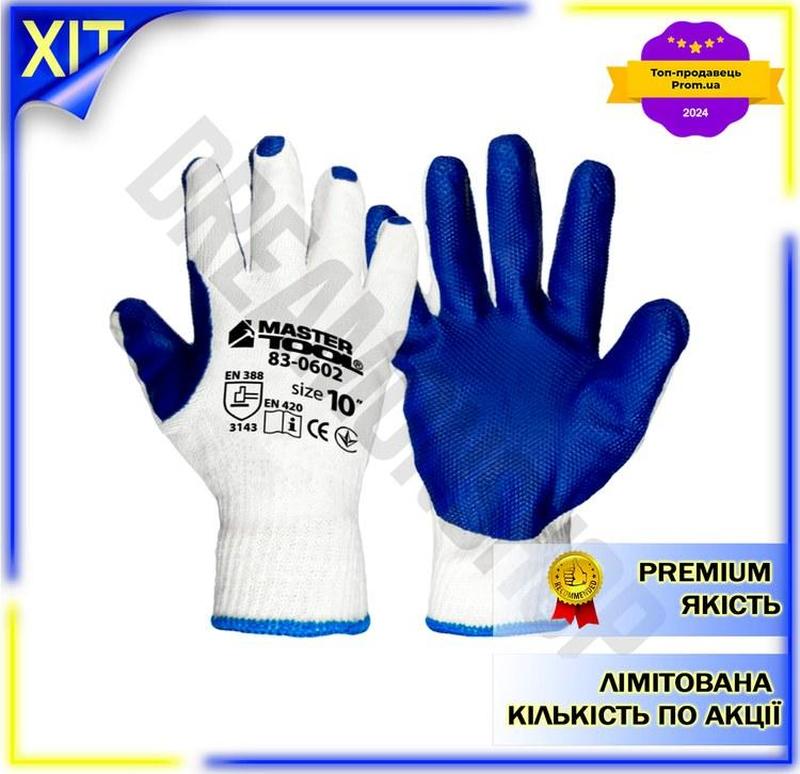 Dm рукавички стекольщика mastertool специфікація 2.2 латексні синя 10 дюймів для роботи зі...