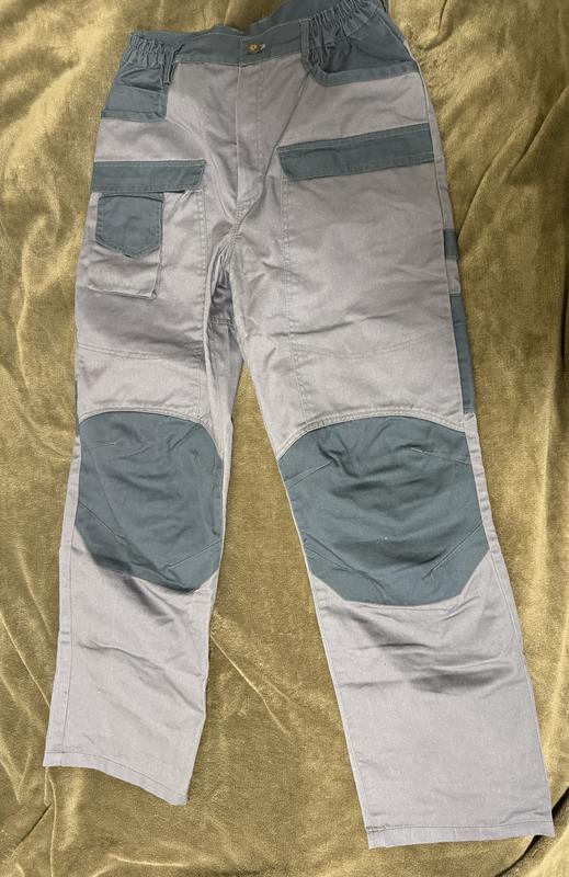 Робочі штани одні довші на фото видно см штанини, 4 пари такого кольору нові, можливо 1-2 рази одягались, ще є 2 пари іншого кольору з плямами, але не значні
