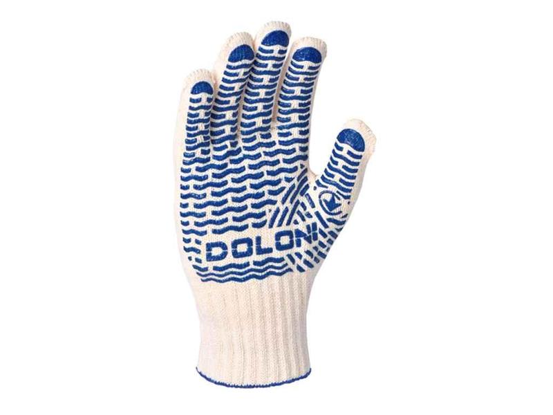 Рукавички ТМ DOLONI призначені для роботи з різними видами інструментів: дрилем, шліфувальною машинкою, перфоратором і т. ін. Правильний вибір засобів для захисту рук під час робіт з інструментом дозволить уникнути багатьох травм і забезпечить необхідний комфорт. Артикул 621 Склад: ХБ 70%, ПЕ 30% КЛАС ВЯЗАННЯ -7 Клас 3 нитки Розмір 10 Виробник: ТМ DOLONI , Україна