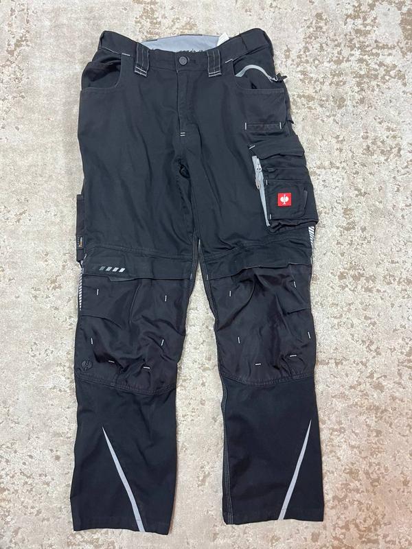 Ергономічний крій зі спортивним сучасним силуетом широкі шлейки з липучками для додаткової робочої сумки еластичний пояс Flexbelt® з боків місця з підвищеним навантаженням посилені потрійними швами наколінники з міцного матеріалу CORDURA® із верхнім входом і застібкою на липучці 2 бокові кишені, одна з них із кишенькою для монет та маленькою кишенею на блискавці 2 задні кишені з міцного матеріалу CORDURA®, одна з клапаном і кнопкою права штанина: функціональна, багатосекційна кишеня для рулетки з міцного CORDURA® ліва штанина: багатосекційна вантажна кишеня, розділена на велике основне відділення з клапаном і липучкою, посилене CORDURA®, похиле відділення для смартфона та захисну кишеню на блискавці вентиляційні блискавки з обох боків на задній частині стегон ненав’язливі світловідбивачі. Йдуть в чудовому стані без пошкоджень, та забруднень. Виконані в розмірі 48 Добре підійдуть на чоловічий М не великий Л Дивіться заміри. Пояс пів обхват 41 см. Бедра пів обхват 51 см. Повна довжина брюк 105 см.