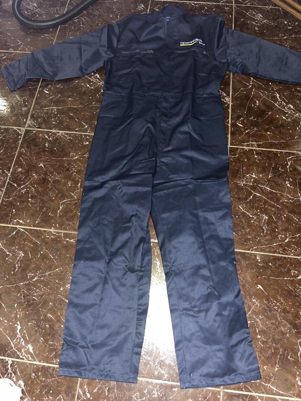 Це темно-синій робочий комбінезон, схожий на ті, що використовуються в різних сферах обслуговування, автомайстернях або як уніформа для технічного персоналу. Комбінезон має довгі рукави та штани, застібку-блискавку, приховану планкою, та численні кишені, що характерно для робочого одягу. Призначення: Зазвичай використовується як захисний робочий одяг для механіків, техніків, будівельників або людей, які займаються ремонтом чи іншими роботами, що потребують захисту одягу від бруду та пошкоджень. Особливості: Моделі такого типу часто виготовляються з міцних матеріалів, таких як бавовна або сумішеві тканини, і можуть бути вогнестійкими або мати інші захисні властивості залежно від конкретного призначення. На фото видно невеликий логотип або нашивку на грудях. Довжина 169,в поясі 110,рукав 53