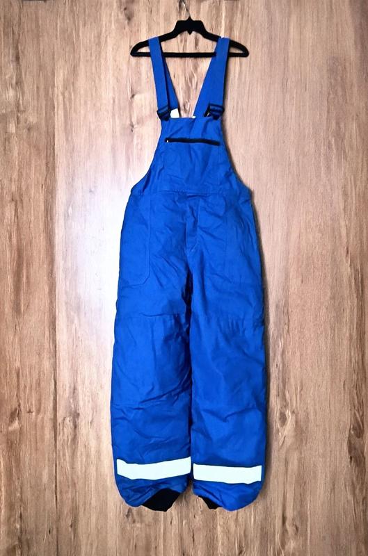 Робочий утеплений напівкомбінезон з плечовими шлейками, внизу на манжетах, новий. Центральна застібка на гудзики, закрита планкою на липучці. Зліва прорізна нагрудна кишеня, з боків накладні кишені, кишеня з-за ду. Розмір заявлено 58 Дивіться на заміри НОПояса 56 см Висота посадки 31 см Довжина від пояса 110+7 манжети
