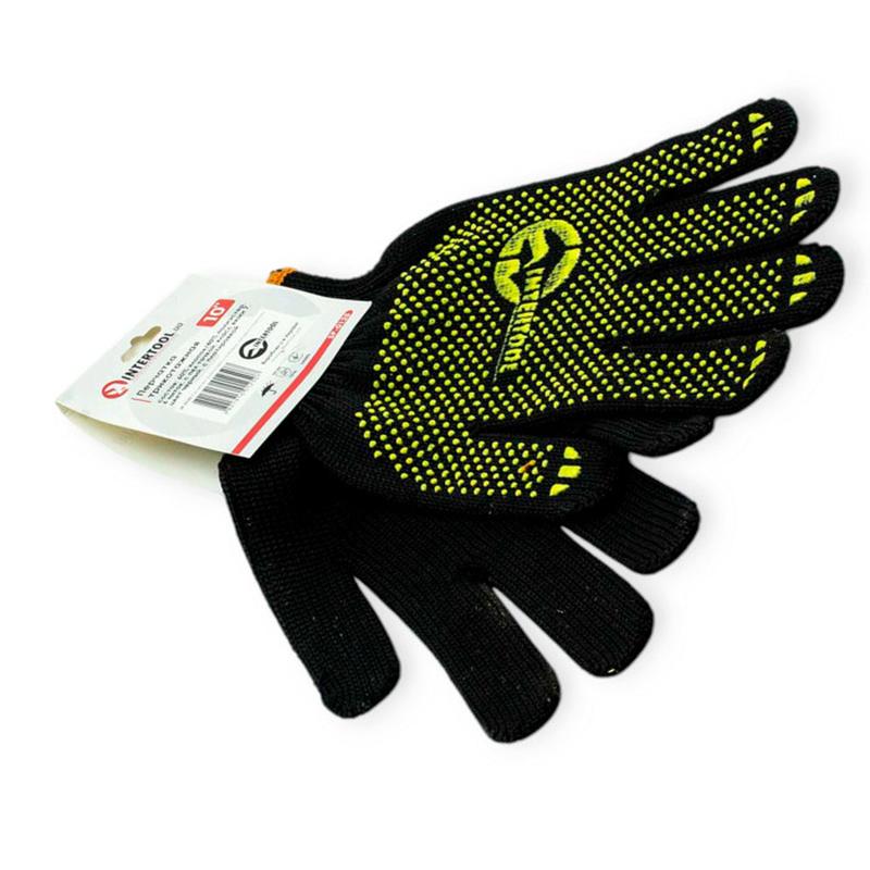 Рукавиці трикотажні із ПВХ покрит., 7 клас, розмір 10, чорні, жовта крапка + лого