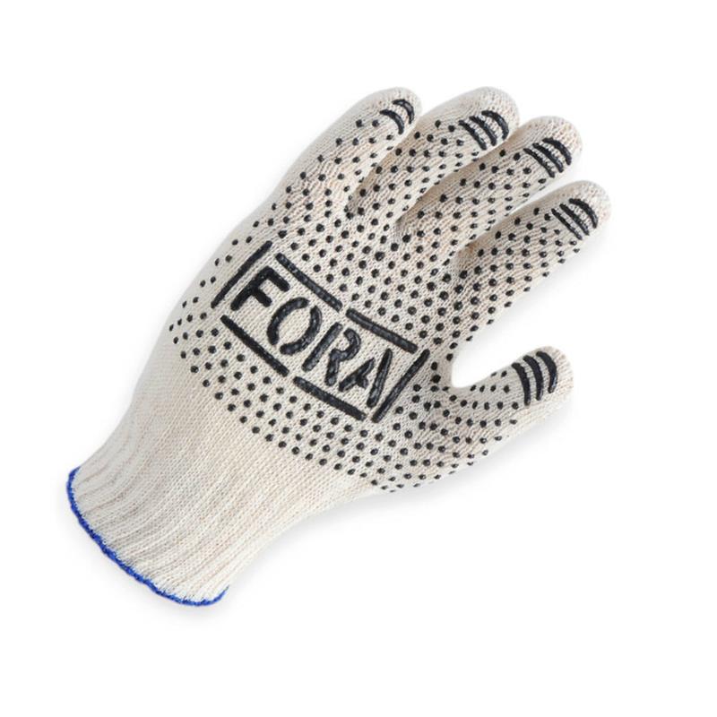 Рукавиці трикотажні із ПВХ покрит., 7 клас, розмір 10, білі, чорна крапка + лого