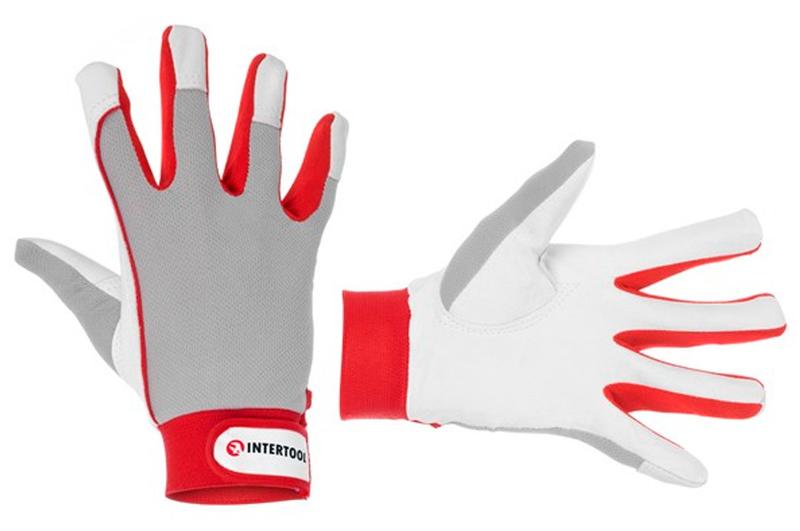 Рукавички SP-0011 виготовлені з якісної козячої шкіри і декоровані тканинними вставками на тильній стороні долоні. Призначені для виконання будівельних і побутових робіт. М'якість матеріалу не сковує рухів пальців. Надійно захищають руки від механічних пошкоджень і забруднень. Розмір: 10,5 "; Товщина шкіри: 0,8-0,9 мм; інше: долоню з цільної шкіри, вставка з бавовни на тильній сторін еластичний манжет на" липучці "