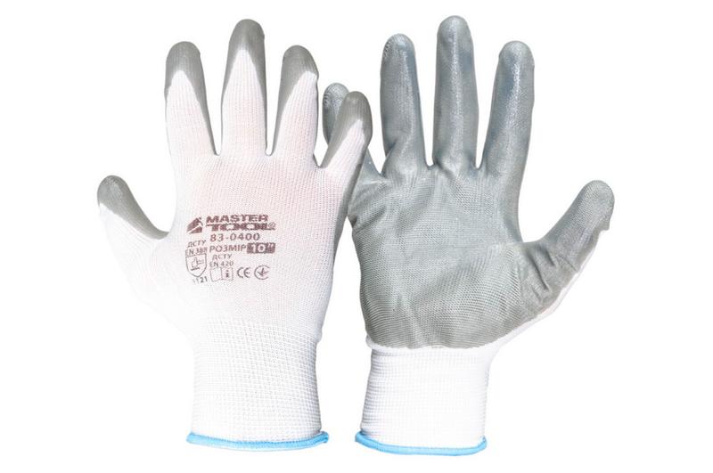 Рукавички mastertool - з нітриловим покриттям 10" (біло-сірі) (12 шт.) 🔥