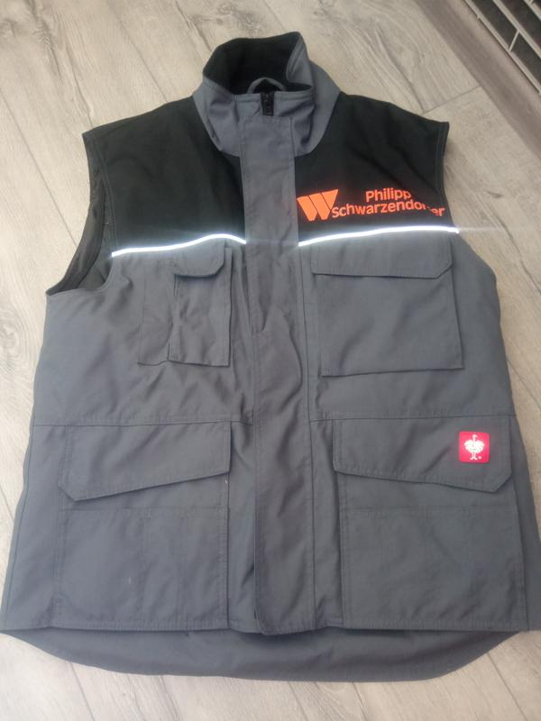 Продаю фірмовий робочий жилет від німецького бренду Engelbert Strauss. Жилет поєднує в собі функціональність та високу зносостійкість. Розмір: S (чоловічий). Стан: Б/в, у дуже хорошому стані. Всі блискавки та липучки працюють ідеально. Матеріал: Міцна зовнішня тканина, стійка до затирання. Утеплення: Стьобана підкладка, що добре тримає тепло. Кишені: Велика кількість функціональних кишень (4 зовнішні на липучках та блискавках). Особливості: Світловідбиваючі елементи для безпеки в темний час доби; високий комір з флісовою вставкою для захисту шиї від вітру