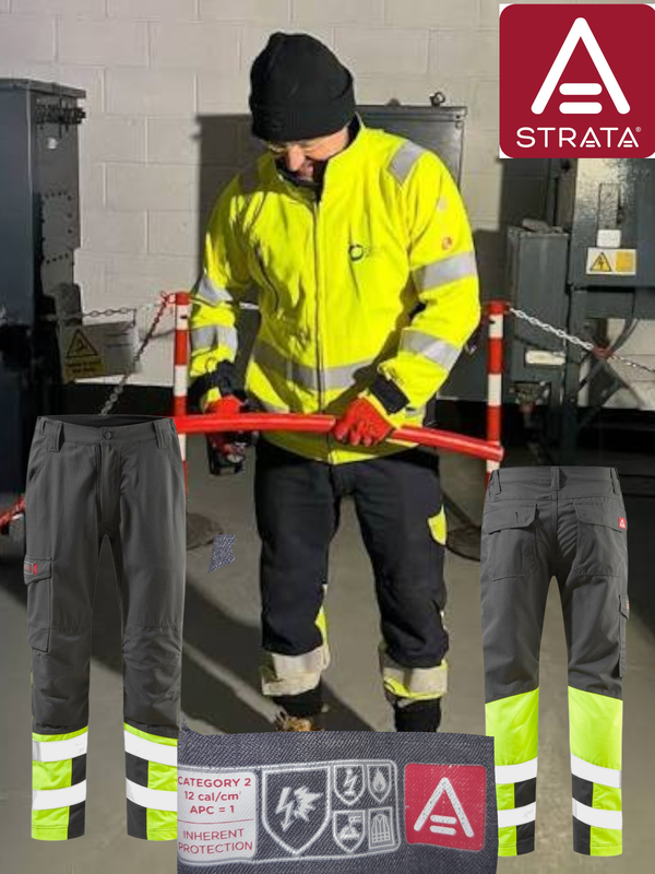 STRATA® Protection – провідний бренд одягу для захисту від дугового вибуху та полум’я в енергетичному секторі. Весь одяг з цієї лінійки пройшов глобальні випробування та сертифікацію відповідно до європейських та північноамериканських стандартів захисту від дугового вибуху, вогнестійкості та високої видимості Легкі та зручні штани забезпечують підвищену видимість у поєднанні з чудовим захистом від електричної дуги, тепла та полум'я. Сертифіковано за стандартом EN 13758-2:2003+A1:2006 UPF 50+.. ATPV 12.0кал/см² та APC = 1 Клас 1 Категорія 2 склад Власна тканина: 44% Модакрил / 30% Бавовна / 20% Поліамід FR / 5% Арамід / 1% Антистатика Д.по біч.шву 107 см, Д.по кроковому шву 77 см П.О.Т. 50-52 см П.О.С. 62 см h. посадки спереду 33см/позаду 40 см. Стан дуже добрий.
