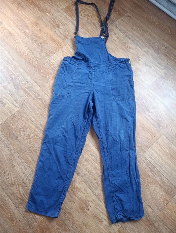 Характеристики: Склад: 100% Baumwolle (натуральна бавовна) — тканина "дихає", приємна до тіла, але дуже щільна та зносостійка. Розмір: 52 (L/XL). Колір: Насичений синій (волошковий). Особливості: Еластичні підтяжки з регулюванням довжини. Багато функціональних кишень (нагрудна, бічні, задня та спеціальна кишеня для інструменту на штанині). Міцні шви, розраховані на великі навантаження. Вільний крій, що не сковує рухів. Стан: Вживаний (б/в), але у гарному робочому стані. Всі кріплення цілі, тканина без критичних пошкоджень.