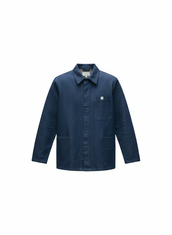 Пиджак 🔥 Новий 🔥 «Chore Jacket» Цей піджак є класичним прикладом робочого одягу (workwear), який поєднує в собі практичність, зносостійкість та позачасовий стиль. Основні характеристики: Матеріал: Виконаний зі щільного та міцного деніму або бавовняного саржевого переплетення (twill) глибокого темно-синього кольору. Тканина має виражену текстуру, що характерно для якісного спецодягу. Крій: Прямий, вільний фасон (relaxed fit), який не сковує рухів і дозволяє одягати під низ светр або сорочку. Деталі: Комір: Класичний відкладний гострокутий комір. Застібка: Центральна планка на ґудзиках чорного або темно-синього кольору. Кишені: Піджак оснащений трьома великими накладними кишенями: одна нагрудна (зліва) та дві місткі бічні кишені знизу. Рукави: Прямі, без манжетів, що підкреслює лаконічність дизайну.