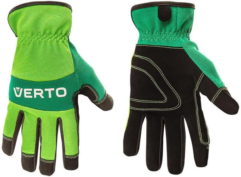 Рукавиці робочі VERTO розміром 8". Забезпечують захист долонь від бруду, подряпин, затискання та шкідливих умов під час праці. Виготовлені з високоякісної інструментальної сталі. Виявляють значну стійкість на розрив. Запевняють зручність під час користування, водночас запобігаючи вислизанню інструмента з рук. Маркування CE ― це гарантія безпеки, яка доводить, що продукт відповідає всім вимогам Європейського Союзу. Марка VERTO адресована майстрам, які займаються дрібним ремонтом.