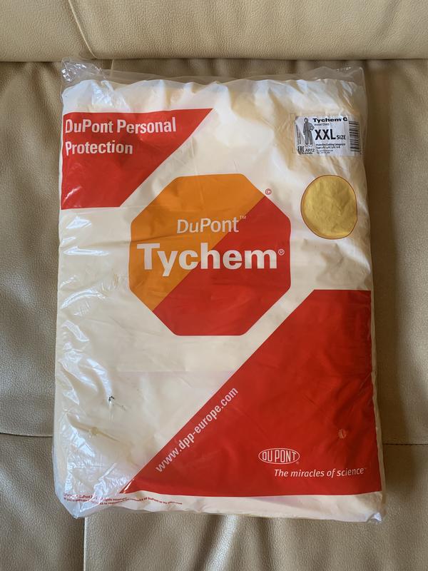 Новий , запечатаний , розмір вказано. Для захисту від надмірного проникнення вологи і від попадання на шкіру шкідливих хімічних речовин використовуються захисний комбінезон TychemCDuPont(Німеччина). Костюм оберігає шкіру від неорганічних і біологічних речовин