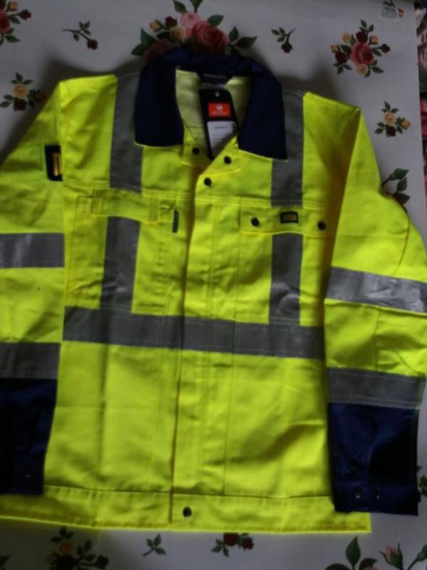 Нова сигнальна спец-куртка фірми KHAN. Кнопки і блискавка робочі.Є світловідбивні смуги.Розмір 48.Плечі 49см ПОГ 60см. Довжина рукава 63см Довжина від плеча 67см Довжина від підмишок 43см. Має глибокі кармани. Склад 55% бавовна,45%polyester. Оплата на карту приват банку. Відправка укрпоштою або новою поштою.