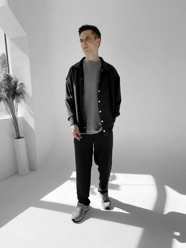 Комплект сорочка штани чорний Артикул: rb3, rb2, rb1, rb5 Посилання на наявність у CRM 👑 Преміум Якість 📦Велика наявність ◾️Розміри: S-M-L-XL ®️Сезон: весна-літо-осінь ©️Колір: сірий ©️Матеріал: креп ☑️Деталі: - бокові кармани - задній карман - пояс резинка - низ без манжету - кнопка - кнопка на рукавах - стійка та комір на флізеліні