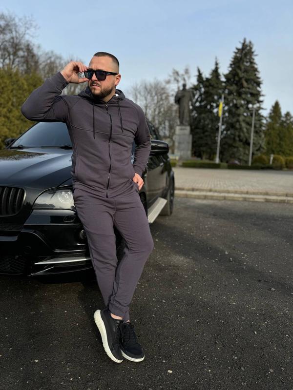 Тканина: трьохнитка петля (90% бавовна 10% поліестер) Якість тканини компак пен‘є, Туреччина Штани на резинці, резинка не перетискає, посадка штанів середня, внизу манжет На поясі є шнурок для додаткової фіксації Кофта на блискавці, має дві основні кишені, капюшон подвійний ❗️Тканина преміум якості, не кошлатиться та зберігає колір після довготривалого прання