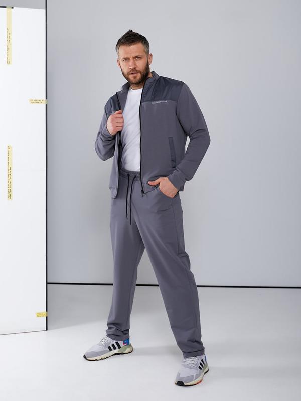 Чоловічий спортивний костюм (Кофта на блискавці/брюки прямі) Костюм виконаний з трикотажу двуніть пінье, виробництва Туреччини . На кофті та штанах глибокі кишені. Пояс штанів на куліске. Вставки на кофті виготовлені з плащової тканини високої якості. Розміри: 50, 52, 54, 56, 58, 60 Кольори: сірий, темно-синій, фуме, чорний Ціна: 1415 грн