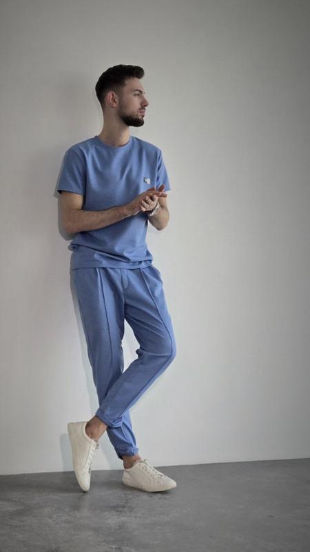 Костюм чоловічий арт. glad. ат 120 Розмір: 46-48 (s-m), 50-52 (l-xl), 54-56 (2xl-3xl) Тканина: структурний трикотажь приємна натуральна тканина (70% cotton, 30% polyester) Колір: чорний, сірий, беж, джинс, білий, олива Футболка з фактурною текстурою, декорована силіконовою нашивкою на груднях. Штани з еластичним поясом, шнурком, бічними кишенями та силіконовою нашивкою. Ціна : 1050 грн