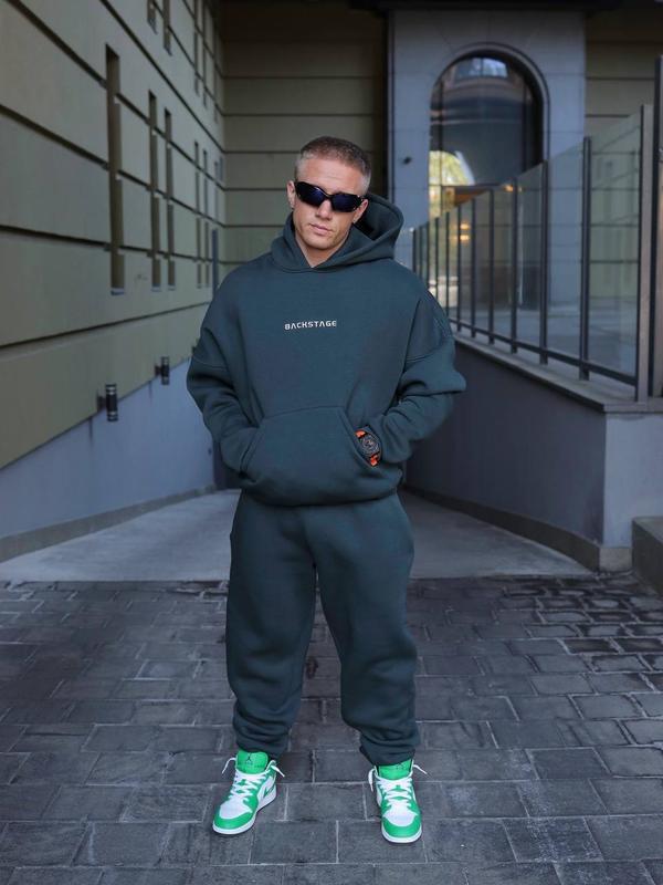 Люксовий теплий парний костюм з вишивкою backstage чоловічий комплект худі і штани на фліс...