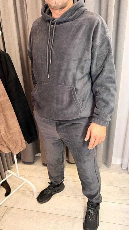 Чоловічий костюм Арт 7248/73+ Тканина: фліс «Полар» (300 г/м.кв.) Колір: графітовий Розмір: 48, 50, 52, 54 🏷️Ціна: 1250 грн Спортивний чоловічий костюм з якісного теплого флісу. Кофта із капюшоном, кишенею «кенгуру». Рукав кофти на резинці, низ кофти на манжеті. Штани із кишенями, талія на резинці, низ штанів на резинці.