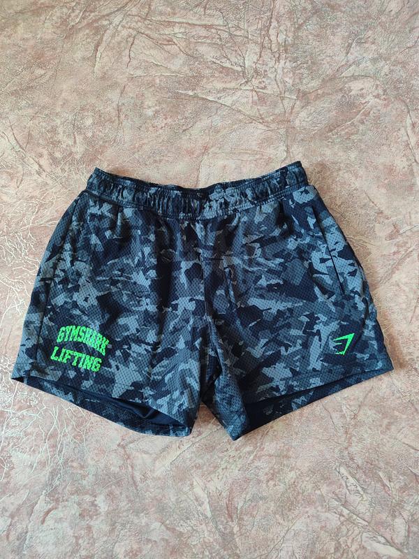Відмінні шорти для тренувань від відомого бренду Gymshark. Оригінальні, в ідеальному стані, без будь-яких пошкоджень. Матеріал: поліестер, еластан. Це поєднання забезпечує відмінну повітропроникність та еластичність, що дозволяє вільно рухатися під час будь-яких вправ. Шорти мають стильний дизайн з камуфляжним принтом. Збоку розташований логотип бренду, а на іншій нозі напис "Gymshark Lifting". Заміри: Ширина в поясі: 35 см Ширина по стегнах: 57 см Розмір: М Ідеально підійдуть для занять у тренажерному залі, бігу або просто для повсякденного носіння.